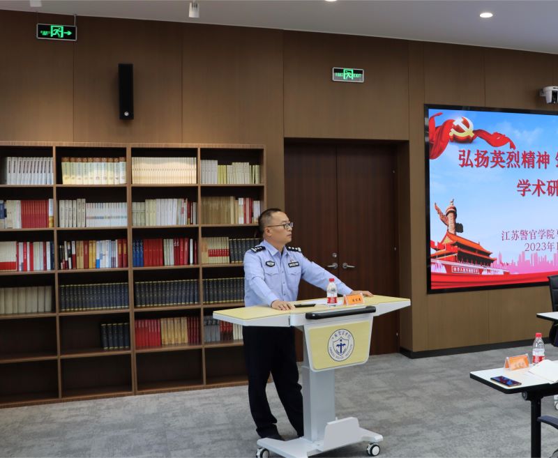 江苏警官学院马克思主义学院刘宝村教授做了“英烈精神的历史传承及其内涵解读”主题发言,主要从“民族精神和家国情怀、勇于担当和中国脊梁、自强不息和艰苦奋斗”等方面对英烈精神内涵进行了阐释和解读,希望青年学警认真学习,苦练本领,赓续父辈血脉,传承红色基因,勇做中国的脊梁,勇做忠诚的卫士。