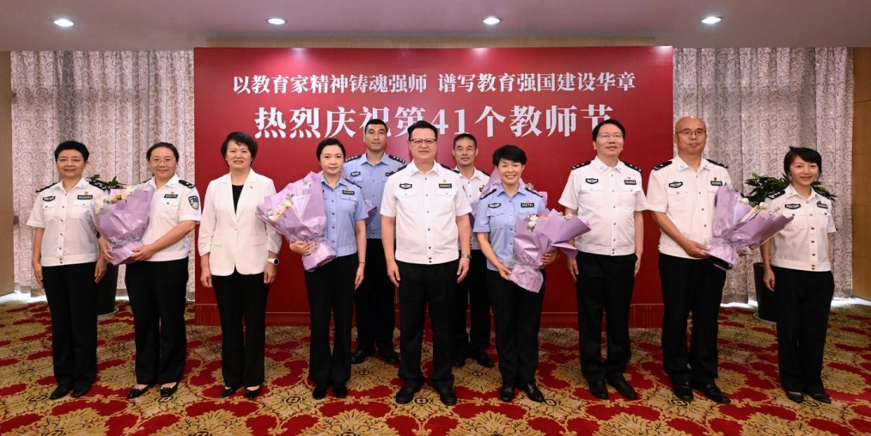胡彬郴指出,在举国上下致敬伟大胜利、礼赞强国复兴的重要时刻,迎来了第41个教师节,可谓双节同庆、薪火相传。纪念中国人民抗日战争暨世界反法西斯战争胜利80周年大会,激荡人心、催人奋进,让我们愈加感受到生逢伟大时代、身处伟大国家,愈加感受到肩负崇高使命、置身崇高事业。要深入学习贯彻习近平总书记关于新时代公安工作的重要论述、关于教育的重要论述,胸怀“国之大者”“省之要事”“警之大计”,牢牢把握对党忠诚是第一标准、为党育人是第一任务、向党而行是第一追求,教育引导警院学子立大志、明大德、成大才、担大任,努力成长为信念坚定、忠诚无畏,专业精通、技能精湛,能拼善赢、作风过硬的警界精英,为谱写公安工作现代化江苏篇章、护航经济大省挑大梁作出应有贡献。