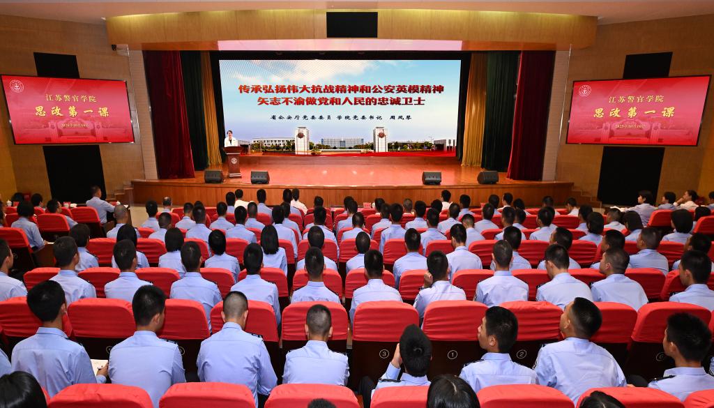 10月10日下午,学院举办2025年秋季学期“思政第一课”,认真学习贯彻习近平总书记关于弘扬伟大抗战精神和公安英模精神的重要指示精神,铭记抗战光辉历史,宣传讲述功模事迹,推动师生把激发出来的精神力量转化为奋进新征程、建功新时代的强大动力。省公安厅党委委员、学院党委书记周凤琴为全体学生授课。