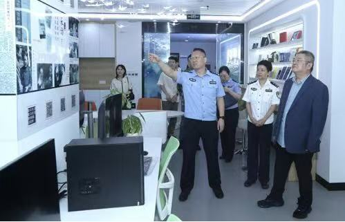 黄建伟一行实地考察了学院融媒体中心、博物馆,参观了“破晓—城市接管中的人民公安”主题展。学院与新华日报社双方互赠书籍史料。