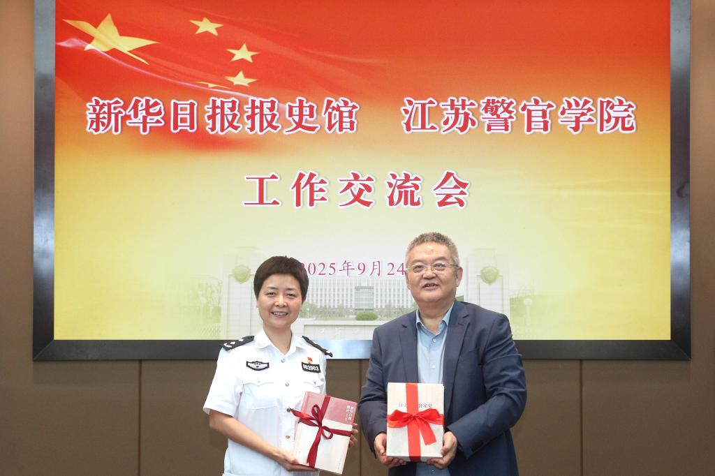 黄建伟指出,江苏警官学院是培育党的忠诚卫士的摇篮,拥有独特的育人资源和精神谱系。要大力推动馆校合作、协同共赢,将党报的历史底蕴、红色文化与警院的忠诚教育、法治实践紧密结合,探索建设跨领域协同育人新模式,培养一批素质过硬的忠诚卫士。互联网时代,要充分认识媒介素养在预备警官培育中的重要性,提升学警“网商”“网感”,善用“网言网语”,增强“媒商”“媒智”“媒能”。要不断探索合作新领域、新形式,开发具有鲜明特色的思政课堂、红色活动、文化产品、育人场景,让红色文化在新时代焕发出新的活力。要充分发挥新华日报的媒体资源和传播优势,与学院携手打造更多有深度、有温度、有影响力的宣传作品。