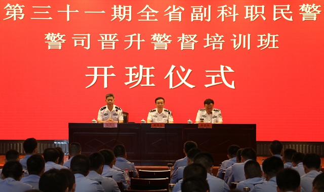 9月7日上午,第三十一期全省副科职民警警司晋升警督培训班在学院举行开班仪式,省公安厅政治部副主任、实训办主任顾博礼作动员讲话,学院党委委员、副院长韩德明出席并致辞。省厅政治部实训办、学院干训部相关人员,本期培训班近170名学员参加了开班仪式。
