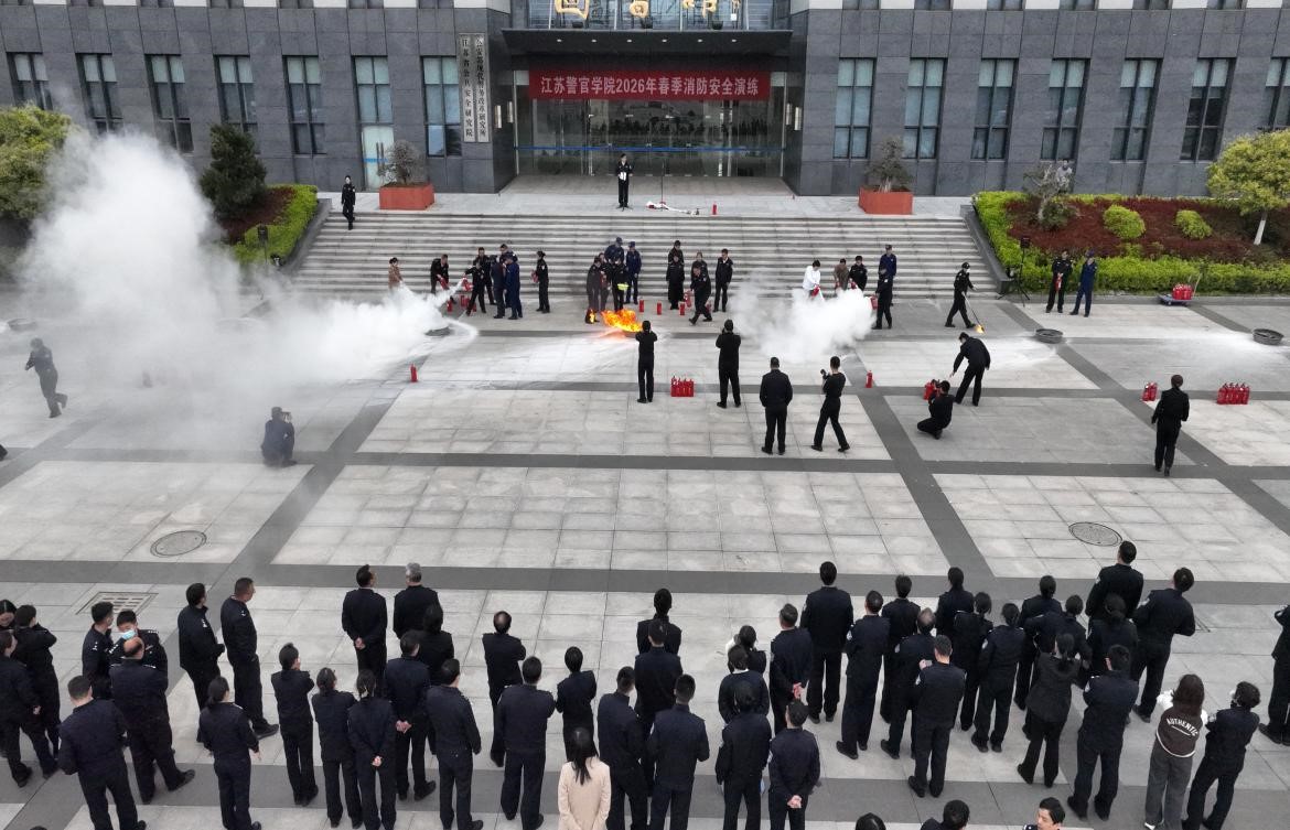 为深入贯彻总体国家安全观,强化校园安全稳定工作,落实胡彬郴副省长关于加强厅机关内部安全生产工作的批示精神,按照省教育厅推进安全生产“六化”建设、省公安厅机关消防隐患排查整治行动部署要求,3月26日下午,学院联合南京江北新区消防救援大队,组织开展春季消防安全演练。在校院领导、师生员工参加演练。