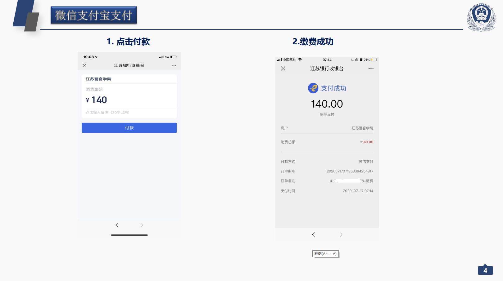 ①预报名的考生通过手机交费,扫描下方二维码进入缴费系统,填写考生身份证号和初始密码(JSPI@+身份证号后六位,如JSPI@123456,JSPI和身份证号末尾是字母的必须大写),登录后点击交费,按提示操作即可,详见《公安院校面向江苏招生面试体测交费操作指南》。
